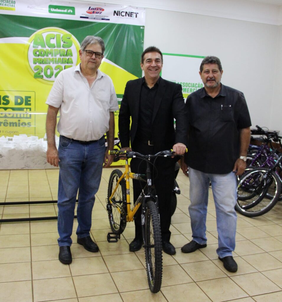 Os ganhadores da promoção “Mês das Crianças ” receberam suas bicicletas aro 26 ao lado do presidente da ACIS, Walceles Paulo de Mello