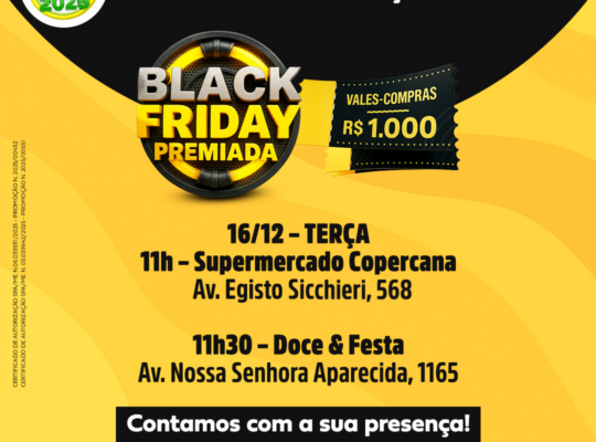 Promoção “Natal Iluminado” – No próximo dia 29, a ACIS sorteará 10 motos elétricas. Para participar, basta realizar compras a partir de R$ 100 nas lojas participantes e cadastrar os cupons no site www.aciscomprapremiada.com.br até as 23h59 do dia 28/12. Vale lembrar que todos os cupons cadastrados desde o início da campanha “ACIS Compra Premiada 2025” são cumulativos e concorrem à premiação de dezembro.