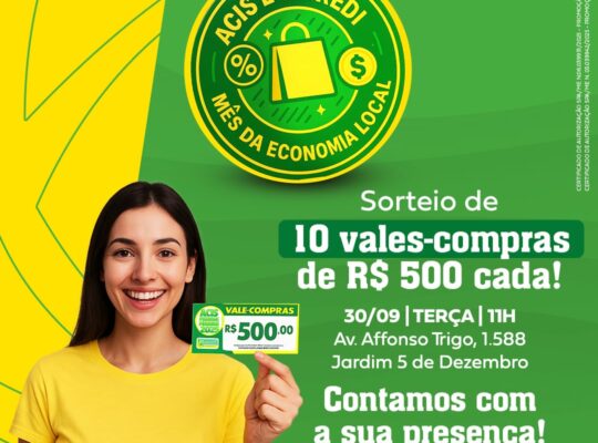 Durante o sorteio, o diretor-adjunto de marketing, Eduardo Leoni, agradeceu aos consumidores pela participação, destacou os próximos sorteios e reforçou os serviços oferecidos pela entidade. “Mais uma vez, gostaria de agradecer a cada consumidor que cadastrou seu cupom no site e peço que continuem comprando nas lojas participantes! Em novembro, teremos o sorteio de três vales-compras de R$ 1.000,00 cada, pela promoção Black Friday Premiada, e, em dezembro, o sorteio de 10 motos elétricas 0 km. Aproveito também para lembrar que, na ACIS, você encontra serviços essenciais para a sua empresa, como o Certificado Digital, Certificado de Origem e muito mais. Entre em contato com a Associação para mais informações”, finalizou Eduardo.
